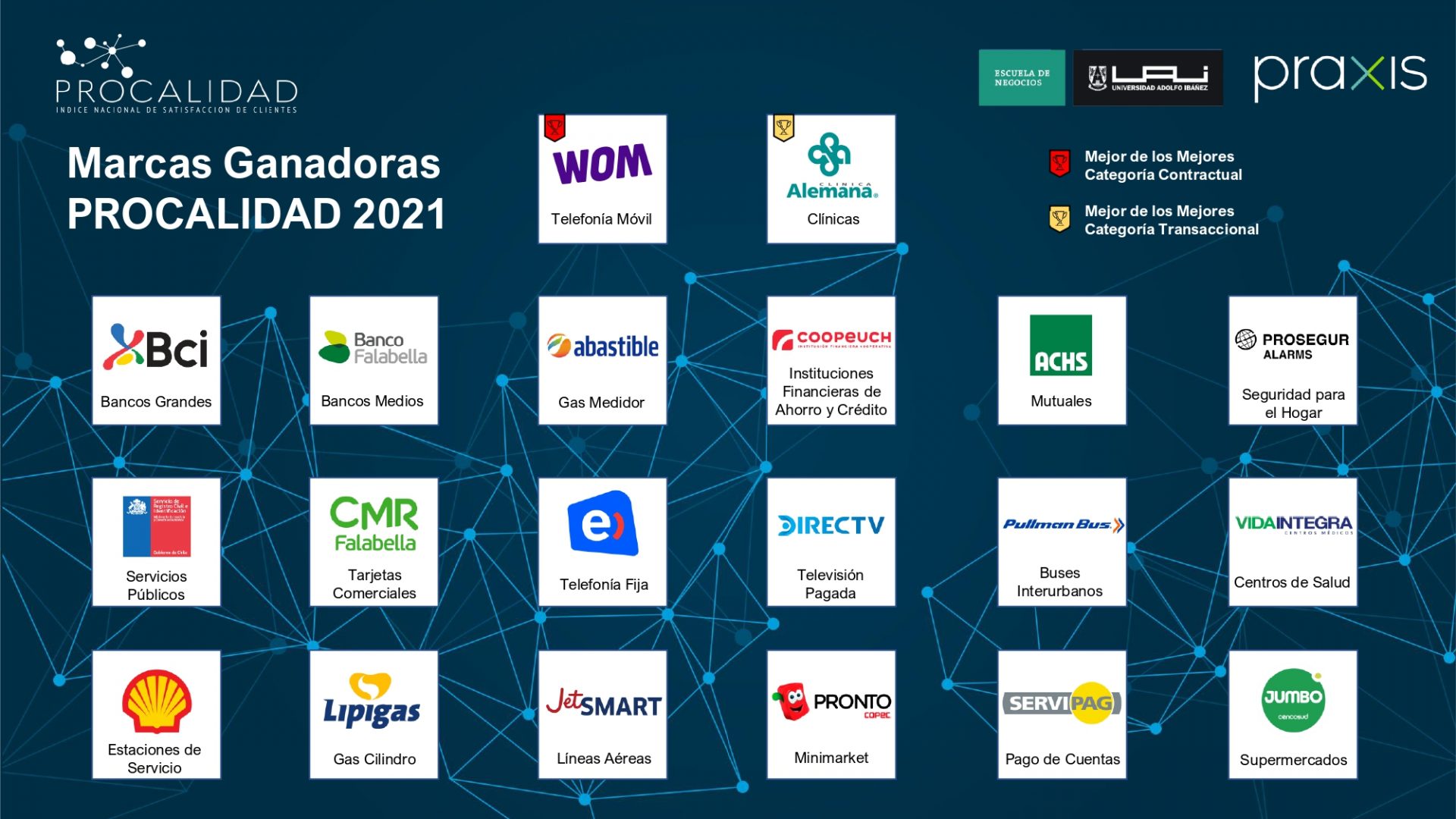 Procalidad es una iniciativa desarrollada por la Consultora Praxis Human Xperience en conjunto a la Universidad Adolfo Ibáñez, y es reconocido como el benchmark independiente de referencia en Chile, donde se utilizan bases de datos privadas y no se recibe ninguna información por parte de las empresas para elaborar el índice. Procalidad se divide en dos categorías, Contractual (que son aquellas empresas que se relacionan con sus clientes sobre la base de un contrato formal que regula esa relación) y transaccional (compañías en las que la relación con sus clientes no es mediada por un contrato). Destacamos también que este evento se lleva a cabo gracias a La Tercera, el medio aliado que permite la difusión masiva del evento.